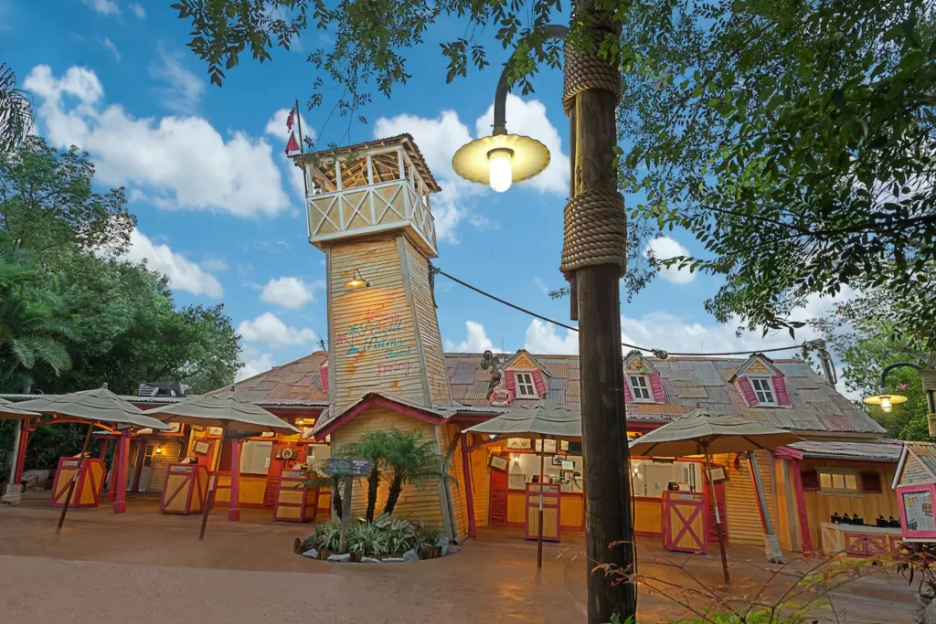 • Leaning Palms: este é um dos principais restaurantes de serviço rápido do parque. O menu inclui sanduíches, saladas, pizzas, hambúrgueres, além de cardápio infantil, cervejas e outras bebidas.
